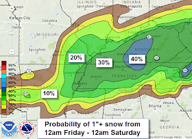 From the NOAA/NWS Weather Prediction Center - probability of 1" or more snow on Friday.